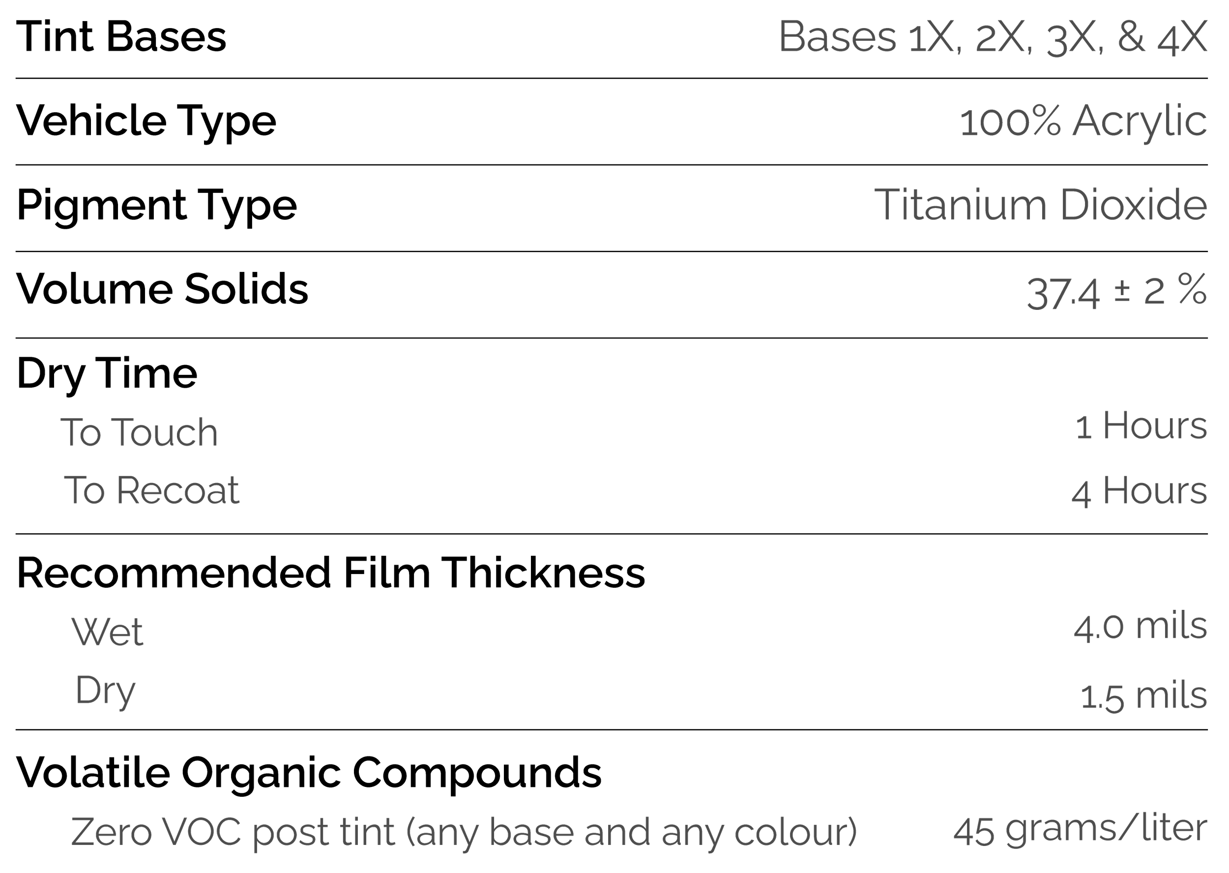 Refer to Benjamin Moore website to view full spec sheet